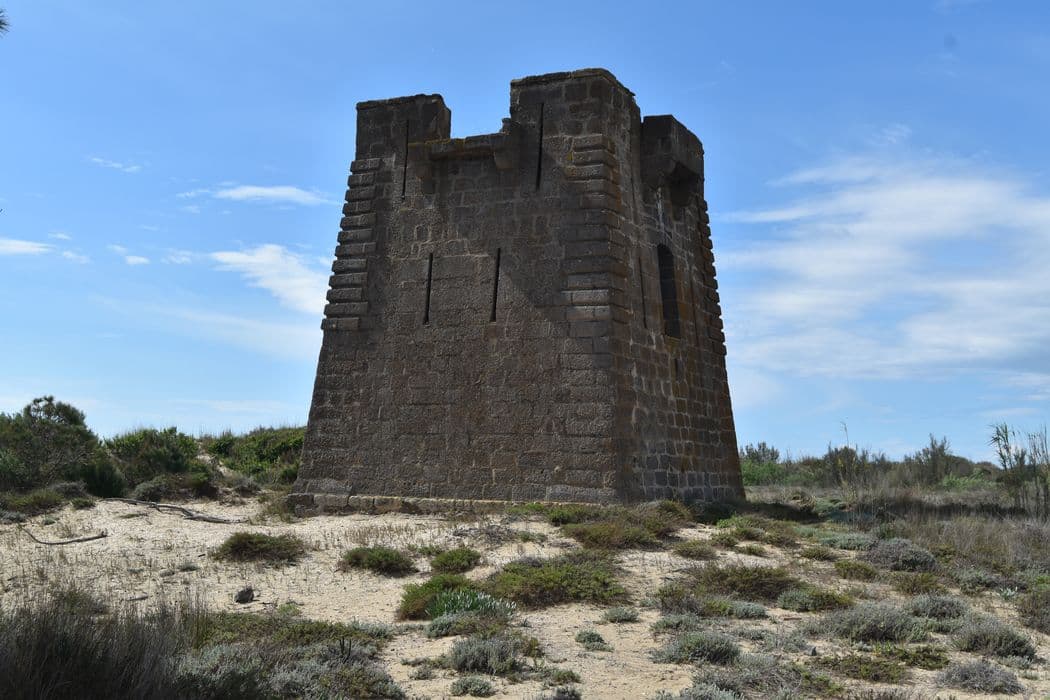 Tour de trois étages. Au plus bas se trouvait probablement le magasin de vivres. L'étage du dessus était accessible au moyen d'une échelle et est éclairé par deux meurtrières sur chaque face. Il est couvert par une voûte en berceau percée en son centre d'une lunette. L'échelle qui avait servi à atteindre le premier étage pouvait, une fois retirée, servir à arriver sur la plateforme supérieure, second étage de la défense avec échauguette à mâchicoulis sur chaque face, meurtrières dans chaque angle rentrant et une de face. Les tours présentent sur la côte ont peut-être remplacé des postes de vigie plus anciens.