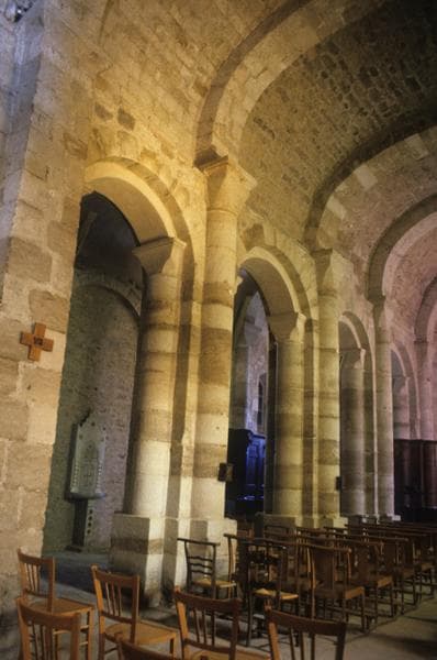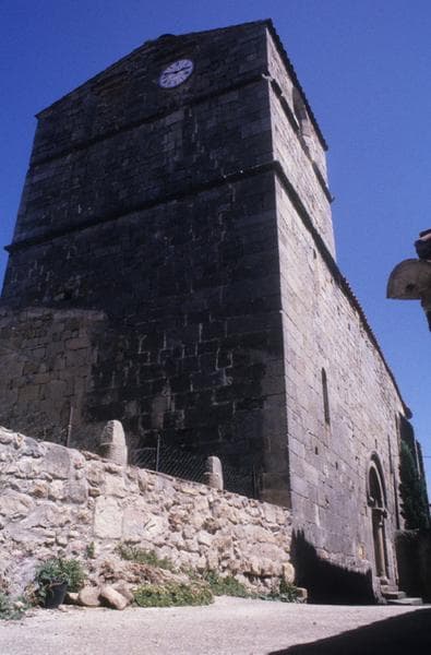 Edifice composé d'une nef de quatre travées et un bas-côté de même longueur au nord, terminés chacun par une abside en cul de four. La nef et le bas-côté sont couverts d'une voûte en berceau, renforcée d'arcs doubleaux. Au sud, un portail plein cintre, cantonné de deux colonnettes, donne accès à la nef. Un clocher massif s'élève à l'extrémité occidentale de la nef.