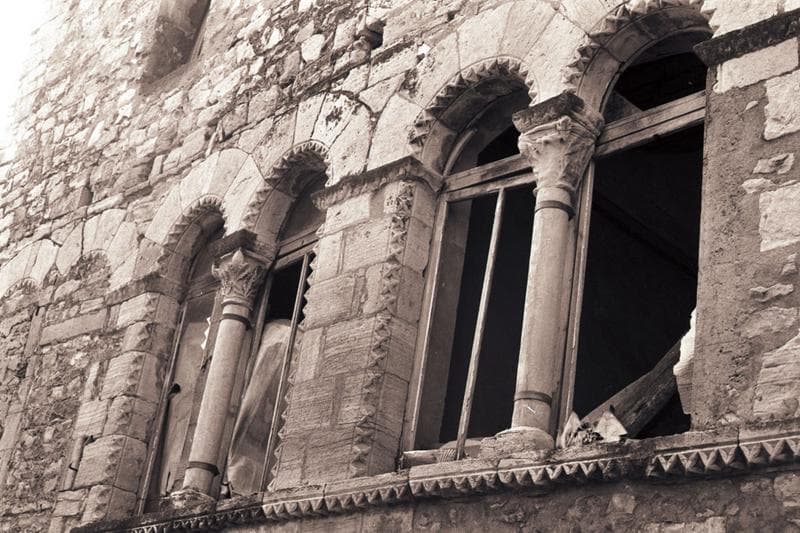 La maison se compose essentiellement d'un corps de bâtiment rectangulaire à deux étages, divisé par un mur de refend. L'accès à la cour de la deuxième partie se fait par une porte à linteau. La façade principale se compose de petites arcatures sur piliers et colonnettes datant sans doute du 12e siècle. Sur la façade latérale se trouvent deux arcatures sur piliers et colonnettes de même type.