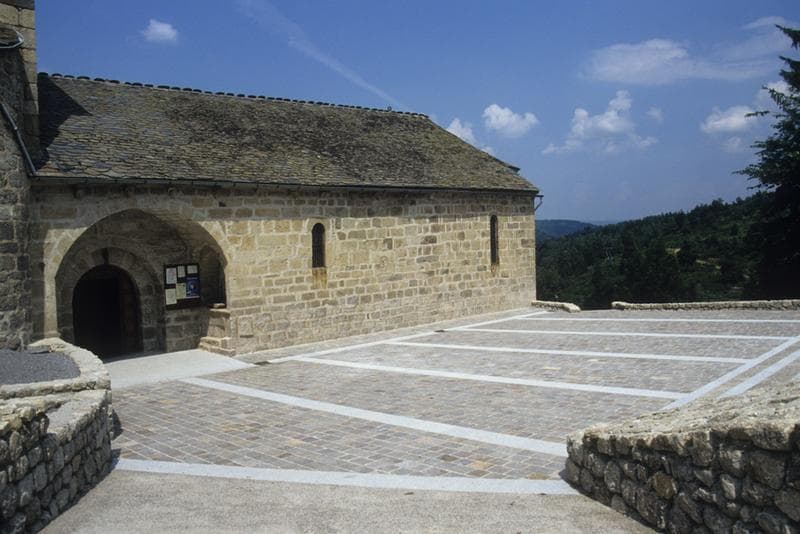 L'origine de l'église soulève deux théories. Pour les uns, elle serait l'oeuvre des seigneurs de Montauroux, dont dépendait Grandrieu. Pour les autres, la présence de saints normands ou bretons laisserait supposer qu'elle serait due à des moines venant de Bretagne. L'ensemble de la construction date des 12e et 13e siècles. En 1305, elle est unie à la mense épiscopale de Mende. L'édifice, orienté, est entièrement construit en granit. Le plan se présente sous la forme d'une croix, avec une nef à chapelles latérales (rajoutées au 14e siècle) et deux chapelles de choeur formant les bras de la croix. L'édifice se termine par une abside pentagonale. A l'intérieur, culs de lampe sculptés (têtes humaines, animaux, feuillages, représentations géométriques). Vers 1923, des travaux conduits dans la chapelle latérale sud ont mis au jour des peintures à fresque à personnages, rinceaux et lettres gothiques. La construction de ces chapelles latérales du 14e siècle pourrait être l'oeuvre d'Anglais, ce que pourrait laisser supposer la représentation de saints populaires en Angleterre, comme Barthélémy ou Onufre. L'édifice est dominé par un clocher carré.