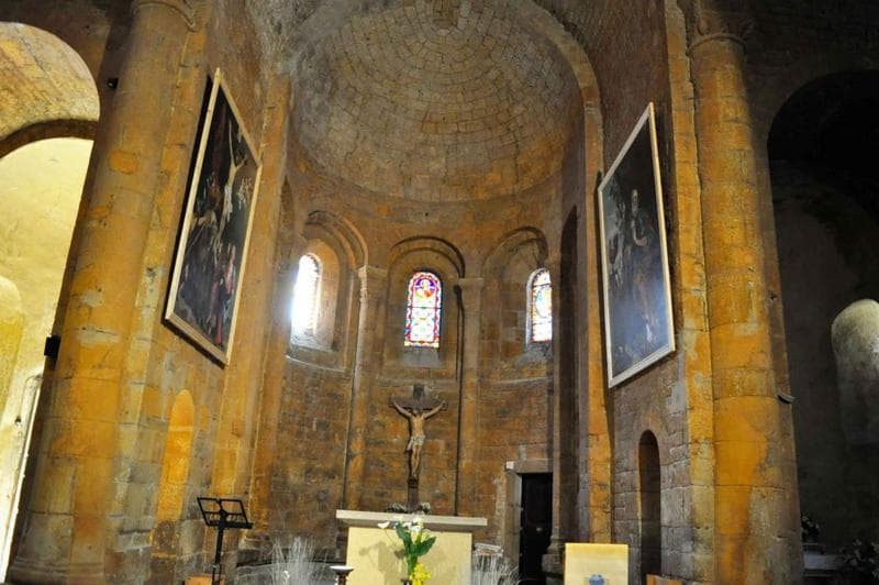 La tradition veut que l'église ait été construite à l'emplacement d'un temple druidique. L'église faisait partie d'un monastère, cité pour la première fois au milieu du 12e siècle parmi les possessions de l'abbaye d'Aurillac. En 1365, le pape Urbain V érige le prieuré d'Ispagnac en prieuré conventuel et le met sous la dépendance de l'abbaye bénédictine Saint-Victor de Marseille. En 1580, l'église est gravement endommagée par les Protestants. Elle est restaurée au début du 17e siècle, puis au 18e. Des restaurations sont également menées en 1807, 1853 et au début du 20e siècle. L'édifice du 12e siècle n'a subi de transformations que dans ses clochers qui seraient du 15e ou du début du 16e siècle. L'un, octogonal, domine la croisée du transept ; l'autre, carré, est placé sur la façade ouest. Le plan orienté se compose d'un transept à croisillons arrondis, d'une nef avec deux bas-côtés, d'une abside semi-circulaire et de deux absidioles voûtées en cul de four. Le carré du transept est couvert par une coupole octogonale nervée sur trompes avec un oculus central.