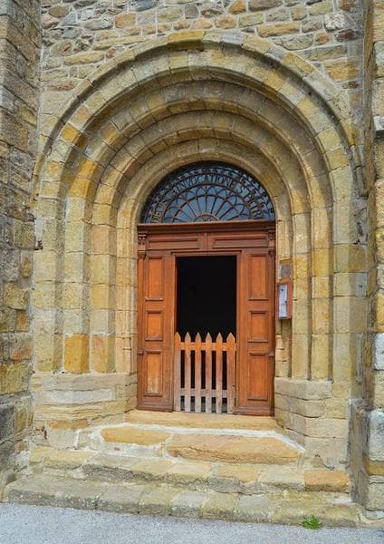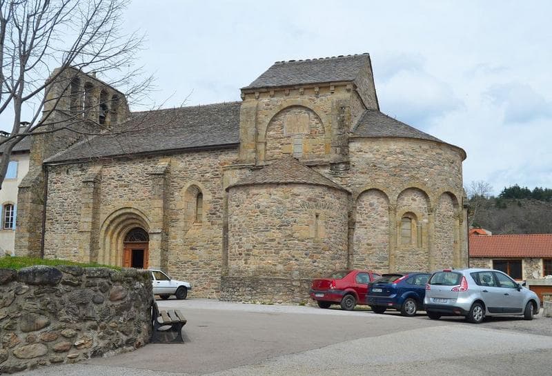 La première mention de l'église remonte à 1119, dans la confirmation des possessions de l'abbaye de Saint-Gilles du Gard. L'église orientée est complètement construite en granit. Son plan se compose d'une nef de trois travées, précédée d'un clocher porche et d'un choeur sur plan tréflé. La travée de choeur est terminée par une abside semi-circulaire et cantonnée, au sud, par une absidiole semi-circulaire et, au nord, par une absidiole semi-circulaire remplacée, au début du 15e siècle, par une chapelle sur plan carrée. Le portail présente plusieurs voussures en plein cintre. Le transept est couvert par une coupole. Le clocher-porche, à quatre arcades, semble avoir été rajouté postérieurement. Peut-être a-t-il remplacé un clocher barlong sur la coupole ?