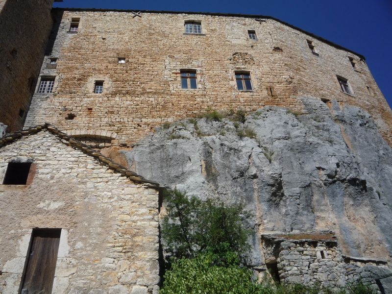 Château sans doute construit au début du 13e siècle. En 1283, le château devient propriété de l'abbaye de Sainte-Enimie dans un but défensif. Au cours des guerres de Religion, le capitaine Merle attaqua le château où résidait le prieur de Sainte-Enimie. Le château résista aux Protestants et stoppa leur avancée vers l'ouest. A la Révolution, le château est vendu comme bien national. Planté sur un éperon, l'édifice domine les gorges du Tarn. Il se compose d'un corps de logis au sud et d'une chapelle au nord, tous deux liés par un mur d'enceinte qui existait également au nord et à l'ouest, délimitant une cour intérieure. La façade nord du corps de logis est accostée de deux petits bâtiments bas en appentis. A gauche du porche d'entrée se trouve la tourelle de l'escalier à vis. A l'angle nord-ouest s'élève une grosse tour carrée. A l'intérieur, seul le rez-de-chaussée a conservé des éléments anciens, dont une grande salle voûtée d'ogives. Au-dessous se trouve une salle basse voûtée en arc brisé.