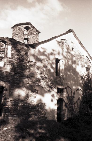 Bâtie au 12e siècle par les moines bénédictins de Cendras, l'église était au centre d'un important village disparu. Pendant la Révolution, elle subit d'importants dommages (destruction du clocher, du pignon d'entrée...). Des travaux furent réalisés au cours du 19e siècle. En 1866, la confrérie Notre-Dame de la Salette est constituée sous l'initiative du curé. Depuis cette date et jusqu'en 1969, l'église fut un lieu de pèlerinage, cette dévotion succédant sans doute à un culte plus ancien, voire païen. L'édifice, orienté, se compose d'une grande nef avec choeur en abside ; d'une petite nef latérale avec sacristie dans l'absidiole, postérieure à la grande ; d'une tour carrée avec accès au clocher. Le presbytère est adossé à l'église et se compose d'un hall d'entrée et de deux pièces en rez-de-chaussée ainsi qu'à l'étage. Le linteau porte la date de 1662.
