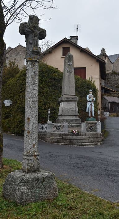 Croix élevée sur un socle. Le croisillon est en granit noir ; le fût et le socle en granit de Serverette. Le fût est à huit faces. Base à moulure gothique. Les petites faces du croisillon portent de gros boutons aux extrémités, ornementation fréquente dans la haute montagne. La base du fût est reliée au socle par des tiges en fer formant consoles. Une moulure Renaissance couronne le fût. Le Christ est représenté en haut relief.