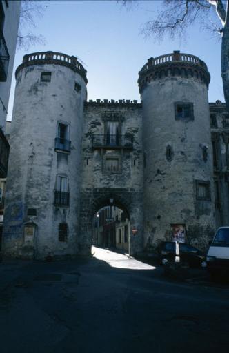 Un des vestiges des remparts de la ville. L'ouvrage a été décoré, vers la fin du 19e siècle, d'un couronnement en terre cuite compressée pour l'accorder aux façades des deux immeubles qui l'encadrent.