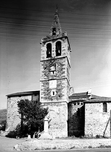 L'édifice date vraisemblablement du 11e siècle et se composait alors d'une nef voûtée en berceau continu, d'un choeur voûté en berceau simple sur lequel s'ouvraient deux absidioles demi-circulaires voûtées en cul de four, d'une abside demi-circulaire voûtée également en cul de four, d'un clocher-peigne sur pignon ouest. Les murs étaient construits en moellons mal assisés. Il ne reste de la porte primitive que les pentures en fer forgé, le portail lui-même ayant disparu. A une époque difficile à préciser, la voûte en berceau de la nef a été reconstruite avec des pénétrations latérales ou alors on s'est contenté de créer ces pénétrations. A l'extérieur, sur la face nord de la nef se voit une bande de pierre de taille qui forme bandeau et semble être le repos de l'ancienne corniche ou cette dernière retournée au moment de l'exhaussement. C'est vraisemblablement à ce moment que fut supprimé le clocher-peigne, remplacé par un clocher carré au sud de l'abside dont il ne susbsiste que l'étage inférieur. Au 18e siècle, construction des chapelles du Rosaire et du Christ, ornées de boiseries et de peintures. Le clocher moderne date de cette période. Il fut construit sur les murs de la chapelle du Christ, en remplacement du clocher précédent probablement écroulé.