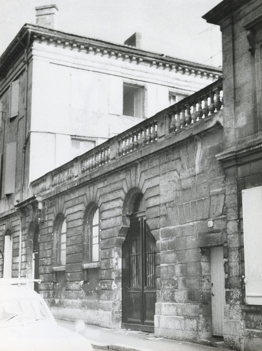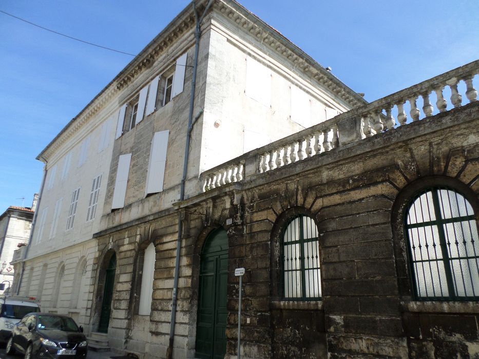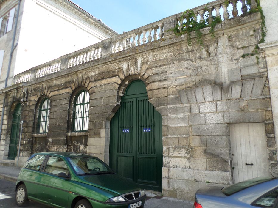 L'emplacement de ce quartier correspond à l'ancienne réserve de chasse du château d'Angoulême, lotie aux 18e et 19e siècles. Cet immeuble présente un rez-de-chaussée appareillé en refends. Les bossages ornent le mur fermant la cour intérieure, surmontés de cinq séries de petites balustres en pierre, séparées à intervalle régulier de piliers pleins rectangulaires. Une des deux portes présente un encadrement en plein cintre. Une clef importante, creusée de cannelures, orne la partie supérieure. Un entablement surmonte cette porte, supporté par des consoles formées d'une partie cannelée, suivie d'une partie droite ornée d'une goutte.
