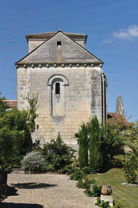 Construite à la fin du 12e ou au début du 13e siècle, l'église appartenait à l'ancien diocèse de Saintes. Elle avait vraisemblablement remplacé une église plus ancienne et s'est conservée dans son ensemble jusque vers 1840, époque à laquelle l'écroulement du clocher fit disparaître la coupole du transept et la voûte du choeur. Plan en forme de croix, à une seule nef et chevet droit. La nef est couverte par une voûte en plein cintre. Les arcs doubleaux retombent sur des colonnes rondes, adossées à des pilastres. Les murs latéraux ont, à chaque travée, une arcature dont l'arc brisé repose sur des colonnes rondes adossées aux pilastres. Chapiteaux sculptés. Le croisillon nord est couvert par une voûte à nervures et à liernes. D'après la tradition, la chapelle était celle des seigneurs du château de Breuilh. Elle semble être de même date que le château : début 16e siècle. Le croisillon sud est couvert par une voûte sur quatre nervures du 14e siècle. La façade occidentale est percée d'un portail plein cintre à quatre voussures, sur quatre colonnettes rondes avec chapiteaux à feuillages. Deux des colonnes montent jusqu'au sommet de la façade. Des colonnes semblables encadrent les portes aveugles et les angles de la façade. Le clocher carré a été refait. La crypte sous l'ancien choeur est inaccessible.