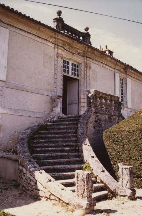 Construction de la fin du 17e siècle ou du début du 18e. Le corps de logis est appuyé, dans son prolongement, par deux pavillons carrés plus bas. Une toiture basse souligne l'aspect écrasé de ce logis, dans la tradition charentaise et saintongeaise. Les deux portes d'entrée sont sculptées (pilastres, corniches...) et surmontées d'une balustrade avec cadran solaire côté cour. A l'intérieur, un couloir a été ajouté pour distribuer des pièces qui, autrefois, se trouvaient en enfilade. Dans le jardin se trouve un puits couvert d'un dôme de pierre.