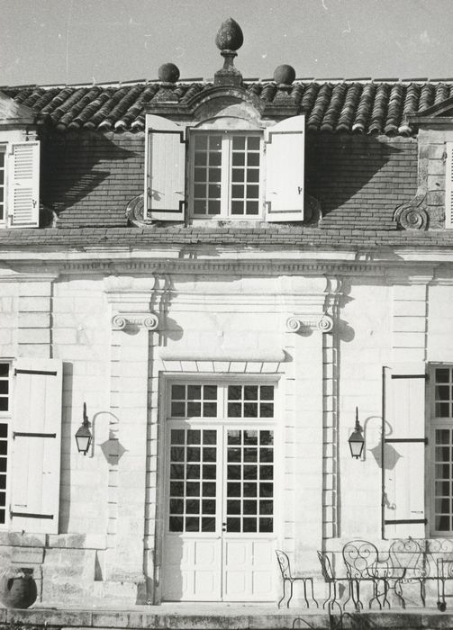 Le bâtiment, orienté selon l'axe nord-est / sud-ouest, est flanqué du côté cour de servitudes. Du côté jardin, deux pavillons légèrement en ressaut et augmentés d'un étage, cantonnent le corps central. Traité dans un parti général horizontal, l'édifice se développe sur un plan rectangulaire très allongé. L'accès se fait par une porte cochère sans couvrement, qui s'ouvre sur une cour fermée de forme irrégulière. La façade postérieure est surtout remarquable par le volume de la toiture et la porte d'entrée monumentale flanquée de pilastres et surmontée d'un entablement orné alternativement de triglyphes et de métopes. L'ensemble est couronné d'un fronton curviligne brisé sur lequel repose le seuil d'une lucarne à ailerons et un fronton triangulaire coiffé d'un acrotère. La façade sur jardin se compose d'un corps central de part et d'autre duquel viennent s'appuyer deux pavillons à étage, symétriques et en léger hors oeuvre. Posée sur un soubassement en glacis, elle est rythmée par une série de pilastres, de jambes et de chaînes d'angle. Aux baies du rez-de-chaussée correspondent une série de lucarnes à ailerons à frontons, tantôt curvilignes, tantôt triangulaires. L'effet de symétrie est totalement respecté. A l'intérieur, les pièces ont conservé leurs cheminées 18e. Ce sont des ouvrages engagés, en calcaire, à motifs de coquille dans le goût rocaille. Le petit salon a conservé ses lambris et son alcôve.