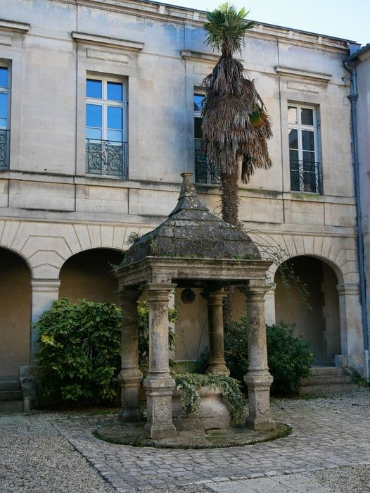 Le couvent fut fondé à Cognac en 1612. La chapelle a été bâtie vers 1635. Le bas-côté droit subsiste seul. L'édifice a été entièrement reconstruit vers 1893-1894. Les seules parties anciennes sont le puits, les trois travées de voûtes d'ogives et la rampe d'escalier en fer forgé du 18e siècle. Le puits, du début du 17e siècle, présente un toit en pierre en forme de carène renversée, porté par quatre colonnes doriques. Les trois voûtes d'ogives reposent sur des culots Renaissance à ressaut. L'arc gothique date de 1894.