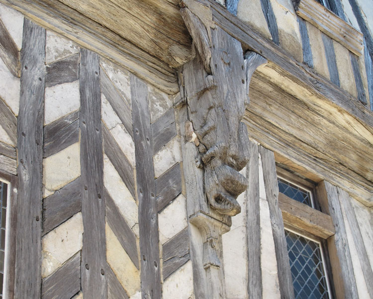 Il ne reste à Cognac que peu de souvenirs du Moyen Age. Cette maison de la fin du 15e siècle en est un exemple. le rez-de-chaussée est entièrement construit en pierres de taille et les étages supérieurs sont constitués par un pan de bois avec torchis.