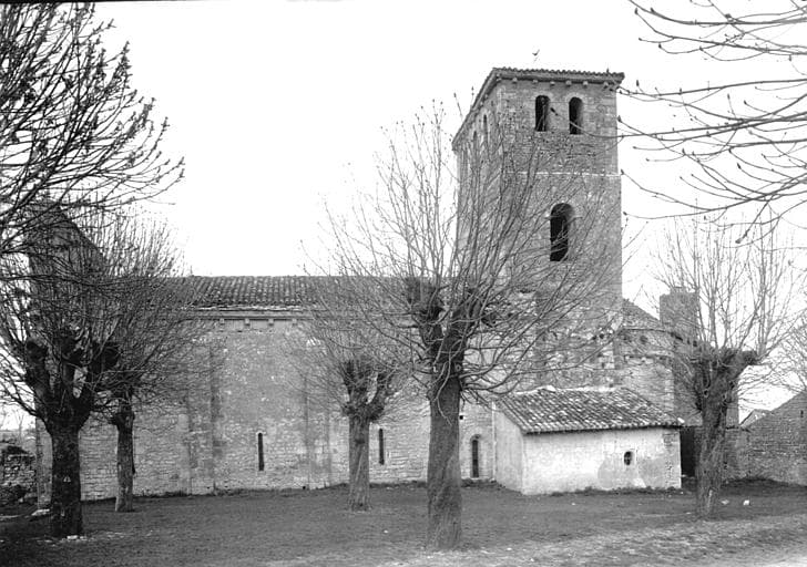 Eglise à nef unique de quatre travées voûtées en berceau sur doubleaux. L'avant-choeur, qui est surmonté par le clocher, est voûté en berceau, comme la nef. L'abside semi-circulaire est voûtée en cul de four. La façade occidentale comporte un porche à deux rouleaux dans un avant-corps en faible saillie. L'abside a été surélevée par un petit mur. Le clocher barlong est percé de baies en plein cintre. A l'intérieur, les chapiteaux sont sculptés. Des fresques du 15e siècle ont été trouvées sous le badigeon (calvaire avec un saint Jean à la gauche du Christ).