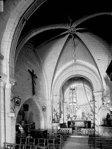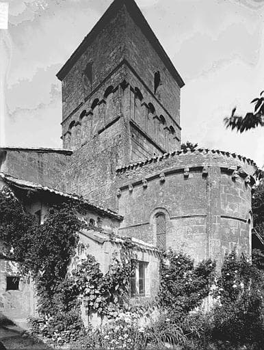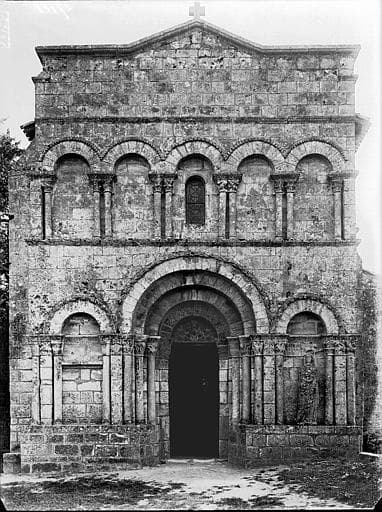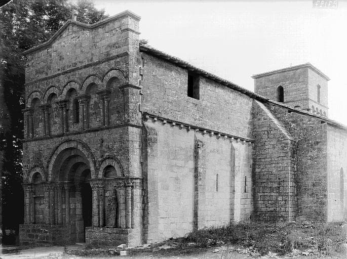 Eglise romane du 12e siècle présentant une façade composée de deux séries d'arcades superposées. La nef est voûtée en berceau plein cintre. La travée d'avant-choeur est voûtée en coupole et surmontée d'un clocher sur plan carré. Abside voûtée en cul de four. Deux chapelles latérales formant transept furent ajoutées à la fin du 15e siècle.