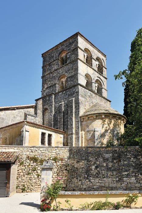 Eglise de l'ancien diocèse de Périgueux, construite aux 11e et 12e siècles, augmentée d'une chapelle latérale au 15e siècle. Edifice de plan rectangulaire, à une seule nef et abside semi-circulaire. La voûte, détruite, a été remplacée par un plafond en bois. Du côté sud, deux grandes arcades en arc brisé donnent accès à la chapelle construite à la fin du 15e ou au début du 16e siècle. Le carré du transept est couvert d'une coupole sur trompes. Petite abside voûtée en cul de four. La façade occidentale s'ouvre par un portail à trois voussures sur colonnes rondes. Clocher carré. Le premier étage présente des arcs aveugles sur pilastres ; les deuxième et troisième étages sont percés de deux baies en plein cintre sur chaque face. A l'intérieur de chaque baie, deux fenêtres géminées plein cintre sur colonnettes.