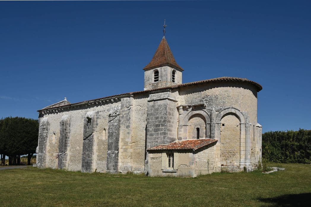 Eglise de l'ancien diocèse de Saintes, citée dès le début du 12e siècle. Plan rectangulaire à une seule nef et abside semi-circulaire. La façade occidentale s'ouvre par un portail à trois voussures plein cintre reposant sur des pilastres. Deux portes aveugles accompagnent ce portail. Elles sont à trois voussures avec gorge, reposant sur des colonnettes rondes. L'étage au-dessus comprend quatre arcatures. L'abside est ornée d'arcatures et de colonnes rondes adossées à des pilastres. Côté nord se trouve le clocher qui a été reconstruit. Il est à peu près carré, terminé par une flèche en ardoises.