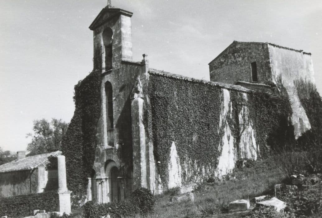 L'église daterait du 12e siècle. Chapelle de village, elle possède des caractères simples, voire archaïques. Le plan présente un rectangle allongé, sans transept, et terminé par un chevet plat épaulé par de longs contreforts. La nef est couverte d'un plafond récent masquant l'ancienne voûte détruite. Le choeur est surmonté d'une coupole simple sur pendentifs. Extérieurement, cette coupole est surmontée d'un clocher carré. La façade est percée, au rez-de-chaussée, de trois ouvertures dont deux aveugles et brisées encadrant la porte d'entrée en plein cintre. Le mur de façade est couronné d'un campanile aussi haut que le clocher.