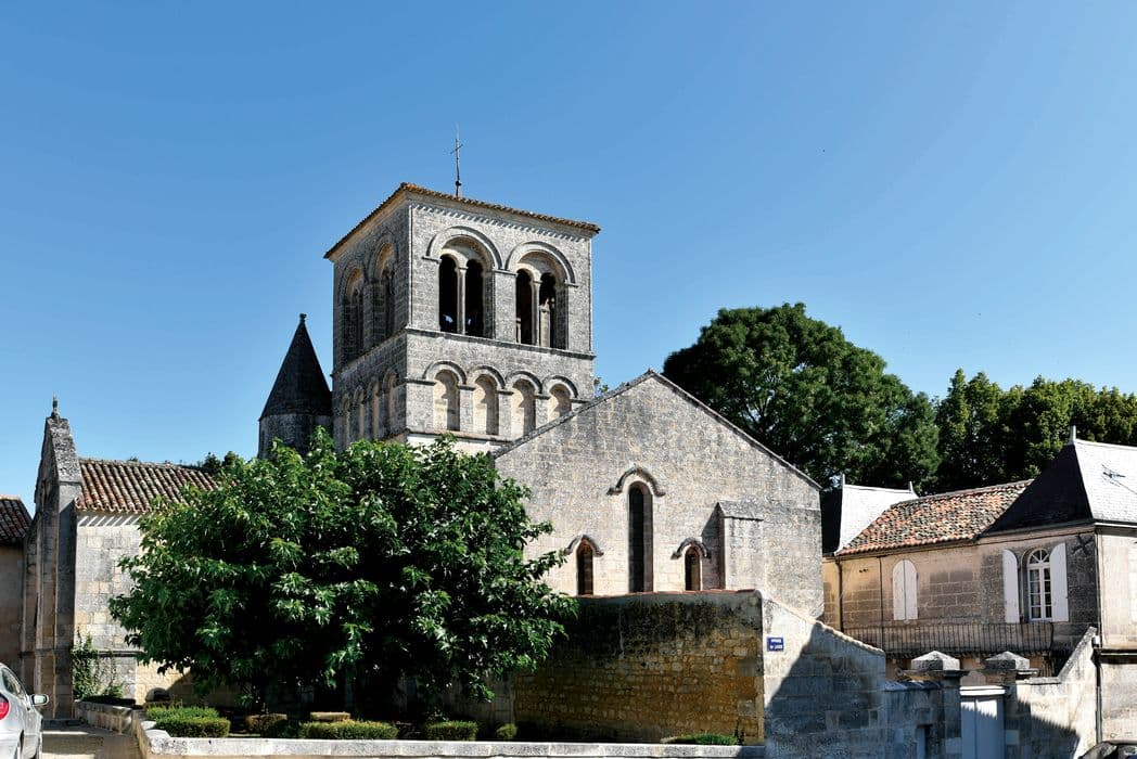 Eglise romane du 12e siècle qui présente une forme particulière de croix grecque. Les quatre bras sont égaux en longueur, mais la coupole n'est pas au centre. Les absides du transept forment un carré. Le clocher est placé au-dessus de la coupole.