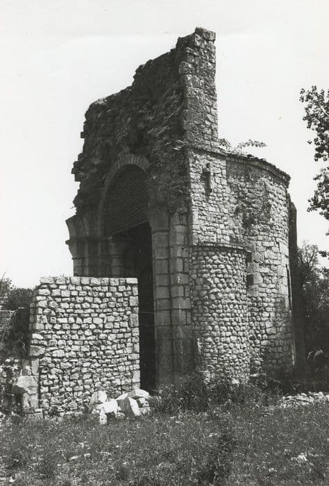 Fondation de Saint-Florent de Saumur, figurant dans les bulles dès 1122. Ce prieuré fut un centre de défrichement aux 12e et 13e siècles. Dispensé de résidence depuis au moins le 15e siècle, le prieur, dont le logis était en ruine dès 1600, nommait un curé dans les derniers siècles précédant la Révolution. De l'ensemble de l'édifice, il ne reste plus que l'abside et le mur de soutènement du clocher vers l'est, ainsi qu'une crypte. Des amorces de murs curvilignes laissent penser que de petites absidioles venaient peut-être s'y greffer. Le carré du transept était autrefois couvert d'une coupole sur pendentifs. L'abside a ses murs rythmés par cinq petites arcades dont deux sont aveugles. Des chapiteaux grossièrement sculptés de motifs végétaux supportent la série d'arcatures.