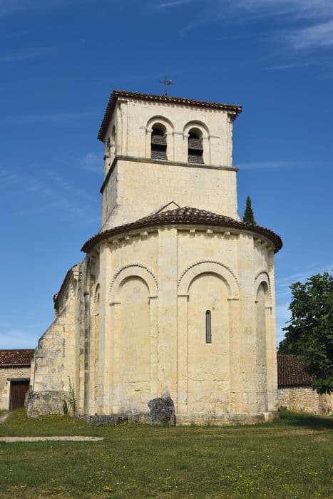 L'église faisait partie du diocèse de Saintes. Elle a été mutilée au cours de la guerre de Cent ans et saccagée par les Calvinistes. Elle fut restaurée et reçut de gros contreforts au 15e siècle. L'édifice est orienté, à nef unique sans transept, surmonté d'un clocher carré à toit presque plat, dont chaque face est percée de deux baies. L'abside est en cul de four extérieurement et décorée d'arcatures presque aveugles intérieurement. Les arcs extérieurs, surmontés d'une frise, retombent sur des pilastres. Au faux carré, sous le clocher, se trouve une coupole sur pendentifs encadrée d'arcs doubleaux.