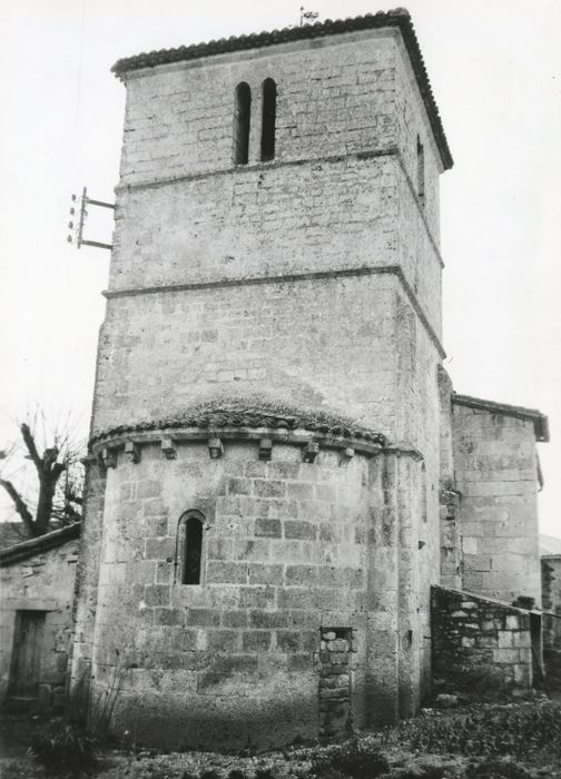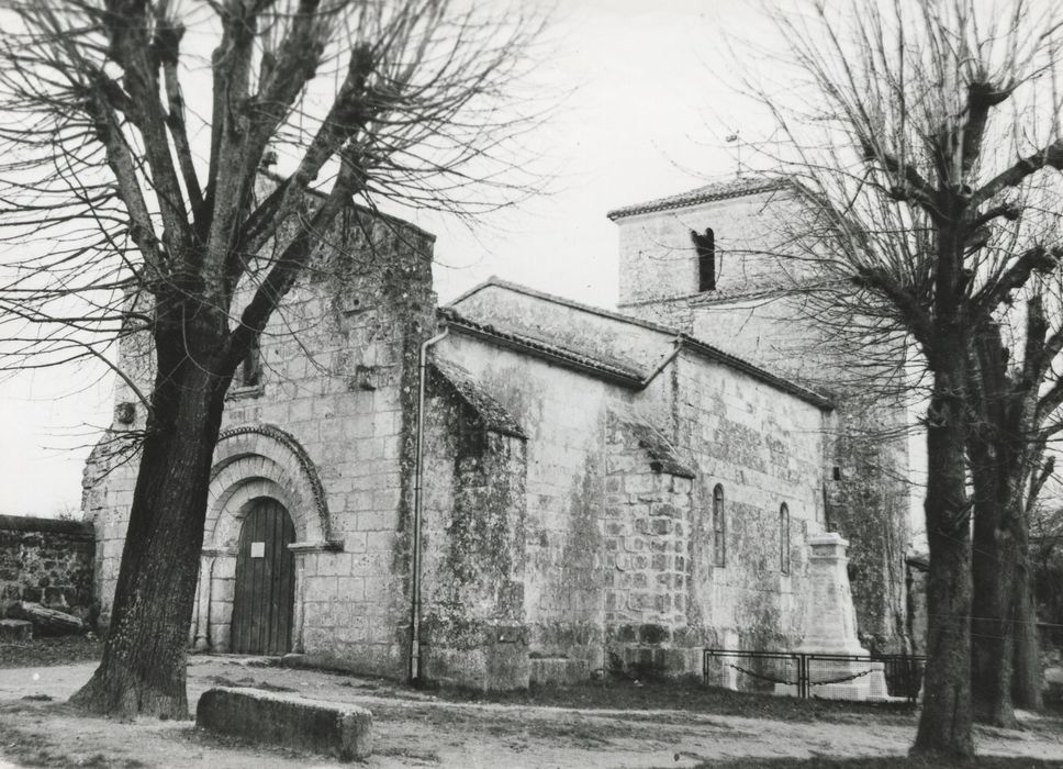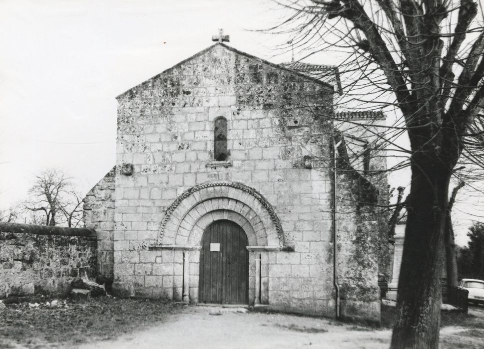 Cette église, dépendant du chapitre cathédral d'Angoulême, n'a conservé de sa nef romane que le mur ouest. Elle a été remontée à la fin du 16e siècle et sa partie orientale élargie pour former transept. L'édifice a reçu un berceau très brisé. Le faux carré, plus étroit, sous le clocher, est couvert d'une coupole sur arc. A l'ouest, les supports sont des colonnes sur pilastres. La façade est percée d'une porte romane à trois rouleaux sur piédroits. Des contreforts du 16e siècle appuient les extrémités de la nef et du transept. Ceux du faux carré, au sud-ouest duquel est placé l'escalier, sont romans. Le clocher rectangulaire est placé au-dessus de la coupole. Le second étage est percé de baies jumelles, séparées par une colonnette.