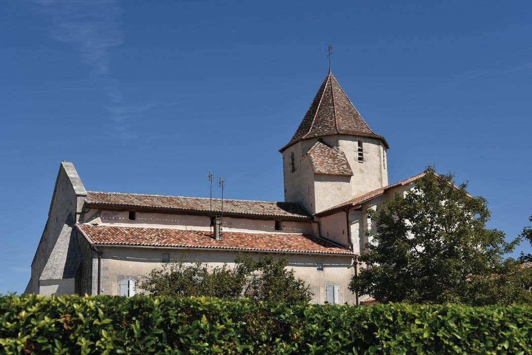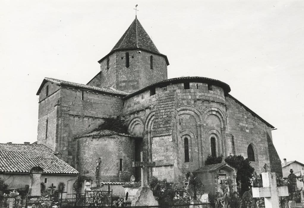 Edifice de plan cruciforme avec absidiole sur bas-côté sud. Le bas-côté nord a été remonté sur croisée d'ogives au 16e siècle. Coupole sur pendentif. Abside en cul de four. Clocher octogonal percé de quatre fenêtres et présentant un chemin de ronde couvert à l'est. Abside en cul de four sur l'absidiole sud. Celle-ci communique avec l'abside par un passage du 16e siècle. La façade à trois portails dont l'un est caché par le contrefort sud-ouest. Cette façade est surmontée par deux étages d'arcatures aveugles sculptées (monstre avec personnage nu ; saints...).