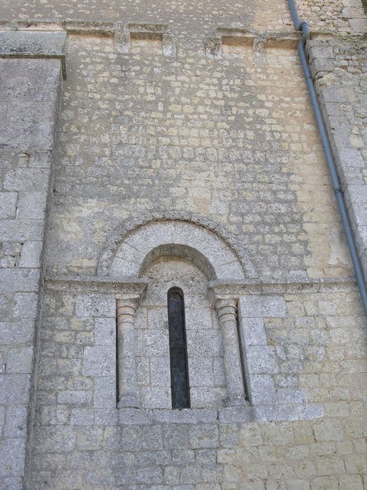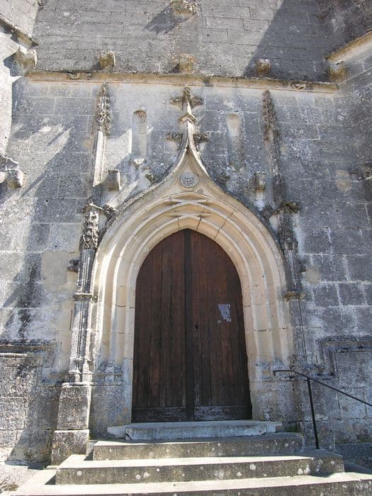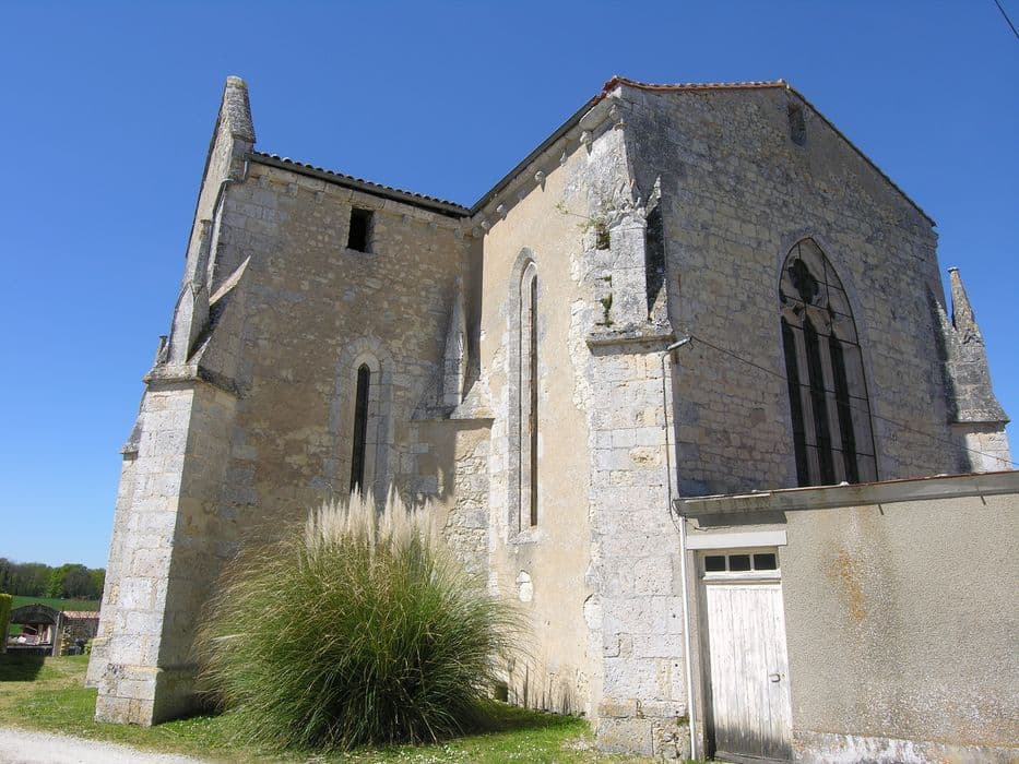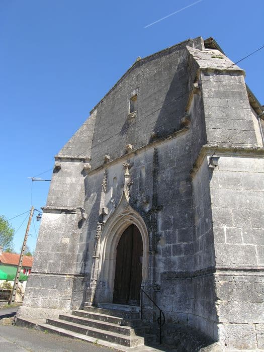 L'église dépendait du prieuré de Barbezieux. Le plan de l'édifice est en forme de croix, avec chevet plat. La nef comprend deux premières travées du 15e siècle, déviées sur l'axe du reste de l'édifice, avec voûtes à nervures et liernes. Une travée plus étroite est couverte de voûtes à nervures reposant sur des colonnes romanes. Le transept et le choeur actuels sont couverts de voûtes à nervures reposant sur des colonnettes du 13e siècle avec chapiteaux à feuillages. La voûte du choeur porte la date de 1682. Le portail de la façade occidentale date du 15e siècle et présente pinacles, moulures prismatiques et choux frisés. Clocher carré avec fenêtres géminées trilobées.