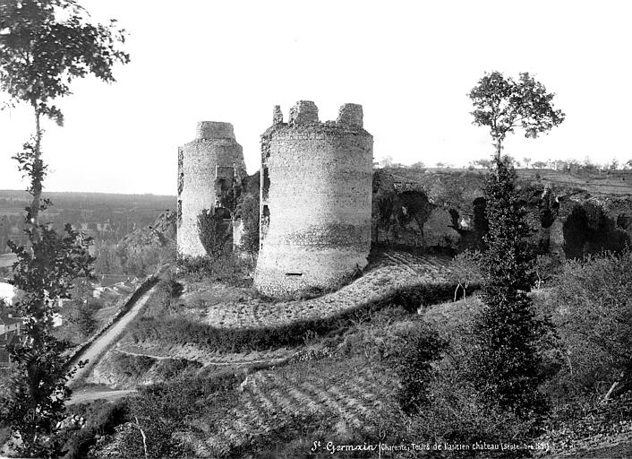 Château comprenant deux tours d'un fort diamètre qui flanquaient trois côtés d'une enceinte quadrangulaire. Le quatrième côté était défendu par une autre tour plus petite. Cet ouvrage commandait un ancien pont sur la Vienne.
