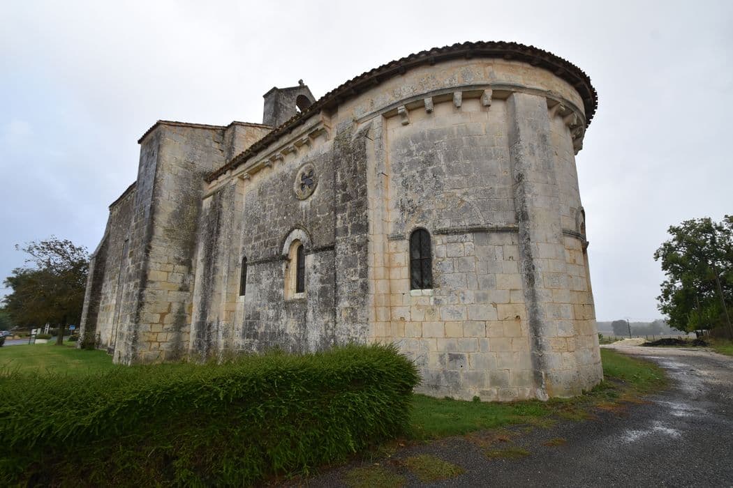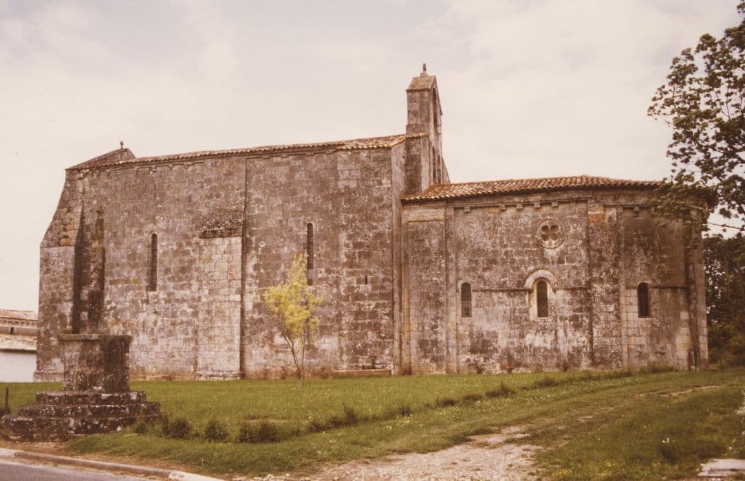 La paroisse dépendait du diocèse de Saintes. De l'époque romane subsistent le chevet et la façade, bien que modifiée au moment de la surélévation de la nef au 14e siècle. Un clocher en position traditionnelle entre nef et choeur devait exister à l'époque romane, et sans doute sur plan carré. Le mur sud conserve encore la tour carrée percée de meurtrières qui contenait l'escalier d'accès à cet ancien clocher. L'actuel campanile pourrait remonter au 17e siècle. Deux chapelles expiatoires étaient encore signalées au 19e siècle, mais n'existent plus. L'édifice à nef unique ne possède pas de transept. Le choeur se termine par un cul de four et comprend une partie du faux carré sous l'ancien clocher. A l'intérieur, la voûte en plâtre remonte au 19e siècle. Dans le choeur, les chapiteaux romans présentent, dans la tradition de la sculpture romane saintongeaise, des animaux mythiques ou non, d'une stylistique orientalisante.