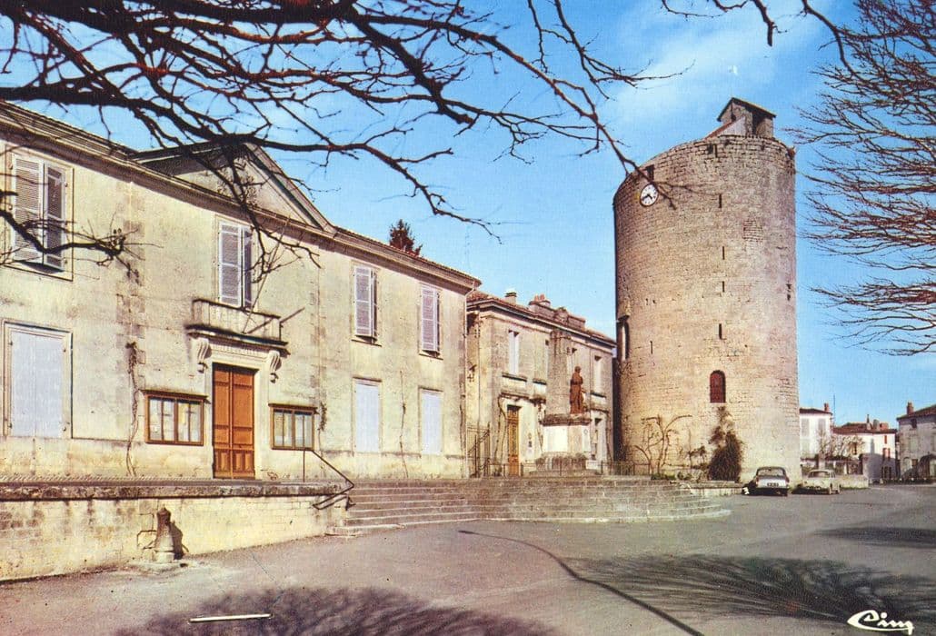 De l'ancien château des seigneurs d'Aulnay ne subsiste qu'une tour, dite tour du donjon. Le château existait encore au début du 17e siècle, tombant en ruine peu à peu. A la Révolution, il sert de carrière pour les constructions. Vers 1820, une seconde tour existait encore, dite tour Saint-Louis. Ce château-fort avait été bâti par les vicomtes d'Aulnay. Pendant la guerre de Cent ans, il a été occupé par les Anglais, assiégé et pris par Dugesclin. Pendant les guerres de Religion, il a été disputé par les Protestants et les Catholiques. Louis XIII est venu l'occuper. Le donjon subsistant comprend un rez-de-chaussée qui a servi de prison communale, un premier et second étage voûtés en coupole, un troisième coupé par la charpente et un quatrième étage dont il ne reste que l'amorce du chemin de ronde.