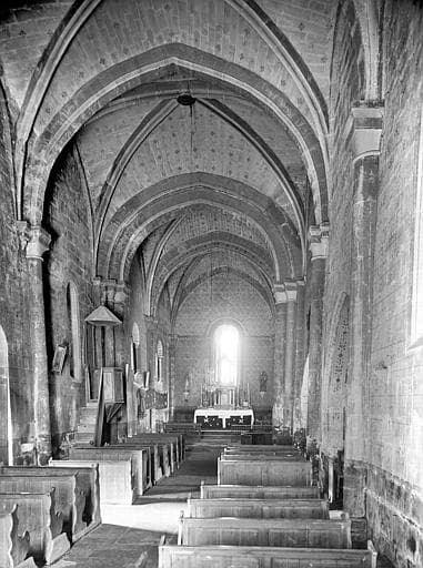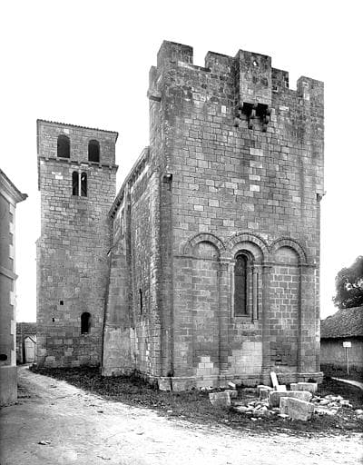 Petit édifice du 12e siècle, offrant une disposition intéressante d'abside rectangulaire ornée de hautes arcatures et surmontée postérieurement d'ouvrages de fortification.