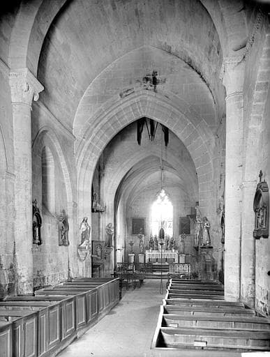 Eglise romane du 12e siècle, avec deux chapelles latérales ajoutées au 14e siècle. A la croisée, du transept, coupole sur pendentifs.