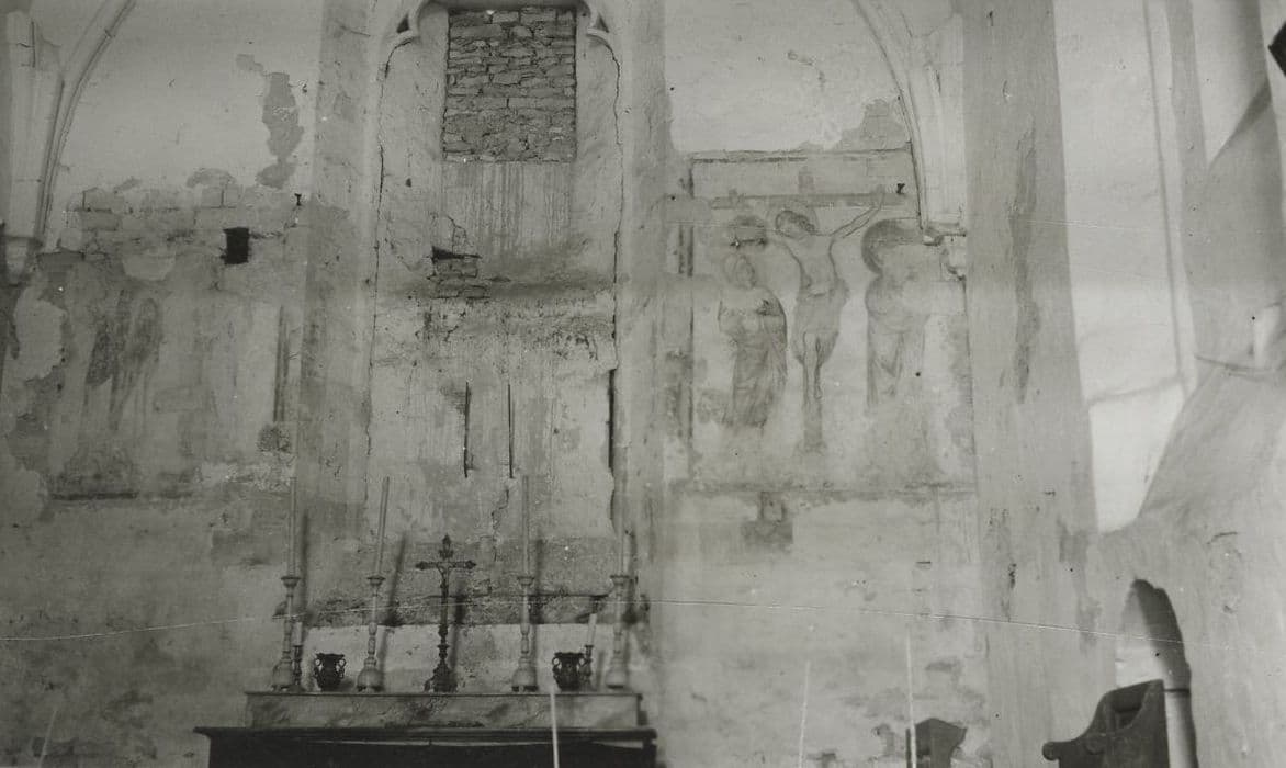 Le prieuré de Breuil-la-Réorthe dépendait de l'abbaye d'Ebreuil, au diocèse de Clermont-Ferrand. L'église, composée d'une nef à deux travées et chevet plat, est moderne dans son ensemble mais présente des restes gothiques. La forme des chapiteaux, la mouluration des ogives, les contreforts droits à l'extérieur du chevet, permettent de penser que l'église a été construite au 14e siècle. Les fresques sont placées sur le mur nord et le chevet. Il en existait aussi sur le mur sud. Elles forment une bande à peu près continue d'1,60m de haut environ, sur laquelle se distinguent diverses scènes (personnages ; Nativité ; Annonce aux bergers ; Adoration des mages ; Crucifixion). Au-dessous des fresques du mur nord, court une bande décorative de rubans ondés entre deux traits. L'ébrasement de la fenêtre du chevet est orné de fleurs de lys alternant avec des fleurons. Le mur nord et la partie supérieure du chevet, côté droit, portent une sorte de quadrillage en faux appareil paraissant antérieur aux figures.