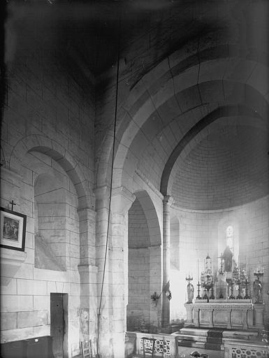 L'édifice comprend une nef à quatre travées. Les deux premières supportent les arcs doubleaux d'une voûte en berceau qui a été démolie lors des guerres de Religion sans doute, et remplacée depuis par un plafond en plâtre fixé sur lattis, en forme d'anse de panier. Les chapiteaux sont sculptés. Au niveau de la deuxième travée, une ouverture avec arcature en tiers-point donne accès à une chapelle du 16e siècle conservant des vitraux historiés. La troisième travée, de plan carré, avec pilastres et arcatures plein cintre, comprend la coupole octogonale reposant sur trompes. Au-dessus s'élève la tour du clocher, haute de deux étages. Le premier est éclairé sur trois faces par deux fenêtres. Le deuxième comporte, sur chaque face, trois baies séparées par une colonne meneau, à double arcature. La quatrième travée de la nef comprend l'abside et deux absidioles voûtées. Ces voûtes, autrefois plein cintre, ont été relevées en tiers-point à une époque moderne, sans tenir compte d'un rang d'arcatures supérieures. La façade ouest a été mutilée. La façade absidale est à cinq travées séparées par des colonnes s'élevant jusqu'à l'entablement.