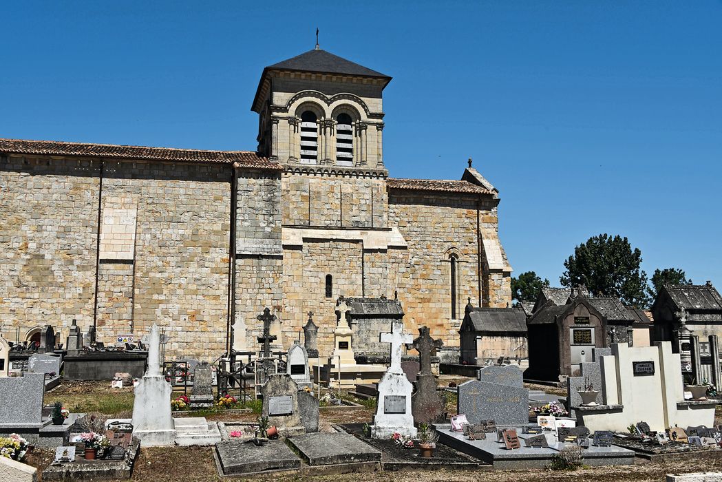 Eglise des périodes romane et gothique. Nef et choeur voûtés d'ogives. Parois et voûtes ont été peintes vers 1905. Travée sous le clocher couverte d'une coupole sur pendentifs. Chevet plat éclairé d'un triplet et d'une rose. La façade occidentale s'ouvre par un portail gothique. Archivolte en arc brisé décorée de feuillages. Jambages réunis par arcatures. L'étage supérieur du clocher a été refait en style roman en 1905.