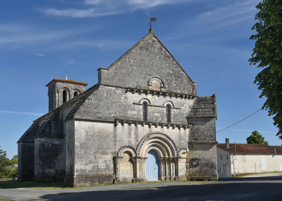 Portail avec chapiteaux finement sculptés. Nef voûtée en pierre. Abside hémisphérique voûtée. Pas de coupole sous le clocher, mais une voûte en berceau.
