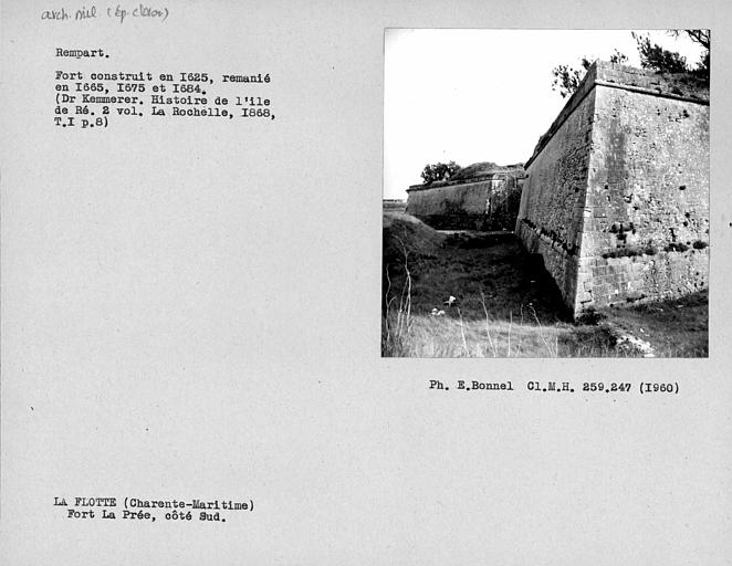 Elément crucial de la fortification au 17e siècle sur l'île de Ré. Il empêchait l'entrée à l'île et le passage du pertuis Breton. Daté de 1625 et bâti par l'architecte d'Argencourt, c'est également le plus ancien fort construit en Charente-Maritime. Le fort a été construit avec les vestiges de l'abbaye romane des Châteliers. En 1628, quelques modifications lui sont apportées : ajout des bastions et des redans au-devant de ce qui va devenir l'enceinte de sûreté ou le donjon. Le chevalier de Clerville réalise un chemin couvert avec des places d'armes rentrantes. Blondel réalise un nouveau projet tout en conservant les éléments anciens, rajoutant une défense plus basse (contre-gardes, demi-lunes, nouveau chemin couvert, front de mer). Pour empêcher la mer d'entrer dans le fort et d'envaser le port, une enceinte de sûreté est réalisée, avec un redan en plein centre. Sur ce glacis va être construit un bâtiment de garnison. Les modifications suivantes seront réalisées par Vauban qui demande à Ferry de raser tous les dehors du fort, le front de mer étant conservé. Une batterie est ajoutée à l'extrémité, permettant de battre et de croiser les feux avec la citadelle de Saint-Martin et des citadelles côtières, pour interdire complètement le pertuis Breton aux ennemis. En 1878-1880, réalisation de traverses-abris et d'une nouvelle poudrière. Le bâtiment est désaffecté vers 1900.