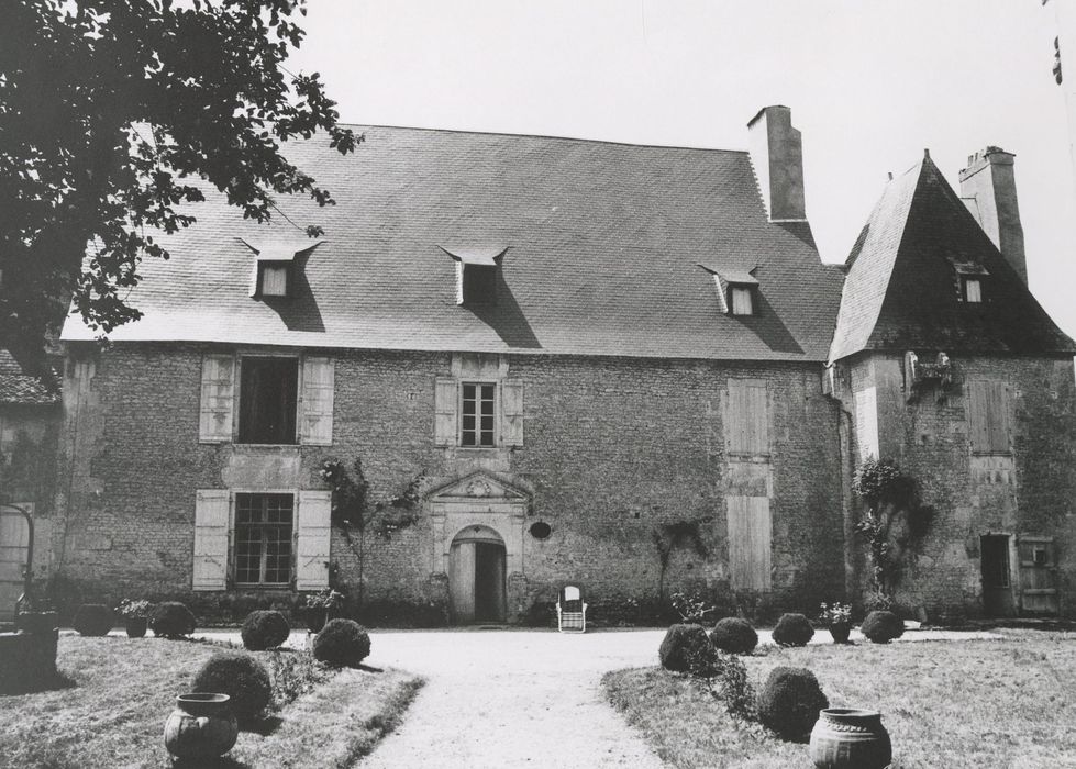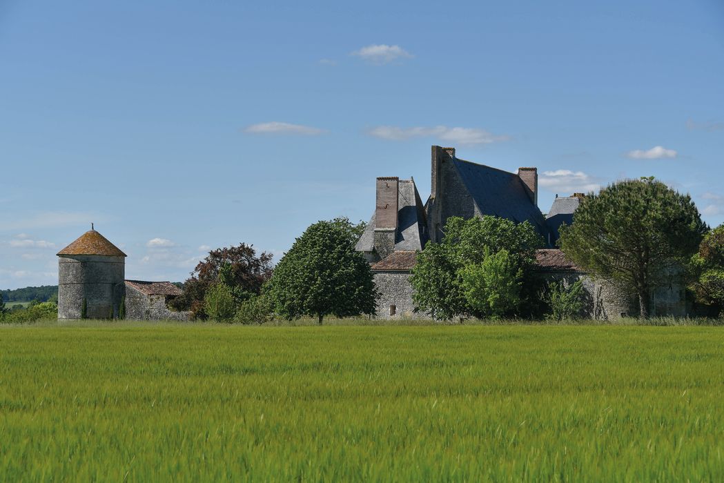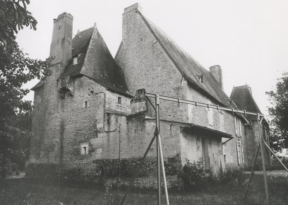 En 1591, l'autorisation est donnée de construire une maison forte afin de faire face aux dangers dus aux guerres de Religion. C'est un bâtiment rectangulaire formant un talus à la base. Le corps de logis est flanqué de deux pavillons carrés, accolés en diagonale aux angles nord-est et sud-ouest et débordant respectivement sur les grands côtés du rectangle. Le bâtiment est situé au centre d'une cour quadrangulaire flanquée aux quatre angles d'une tour, dont seules deux subsistent.