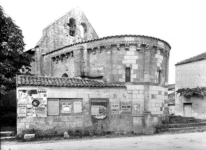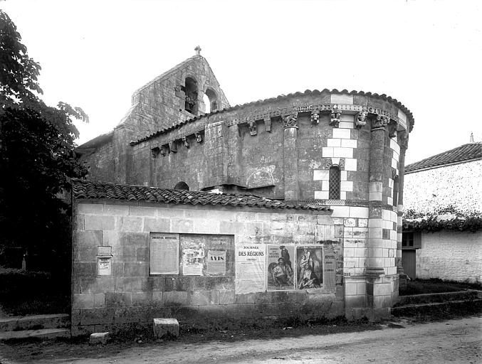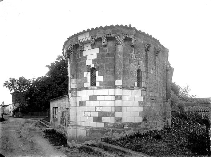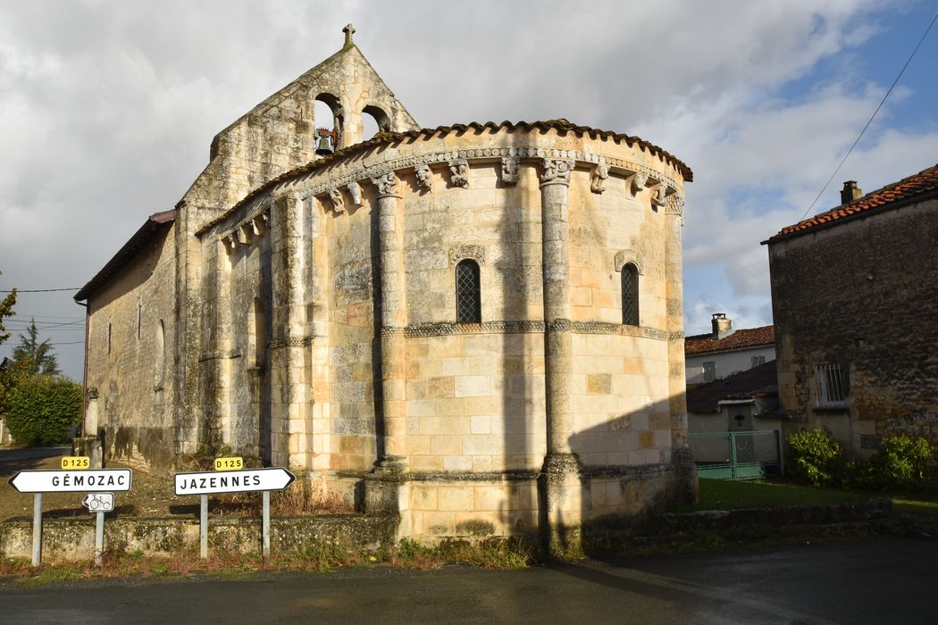 Edifice à une seule nef se terminant par un sanctuaire en hémicycle couvert en demi-coupole. A l'entrée du choeur, côté droit, colonne à chapiteau sculpté. La façade absidale se décompose en neuf travées pleines, dont deux limitées par des colonnes engagées. Chapiteaux sculptés. La porte d'entrée comporte une arcature simple reposant sur deux pilastres. Le pignon est percé de deux arcatures géminées à l'usage de campanile.