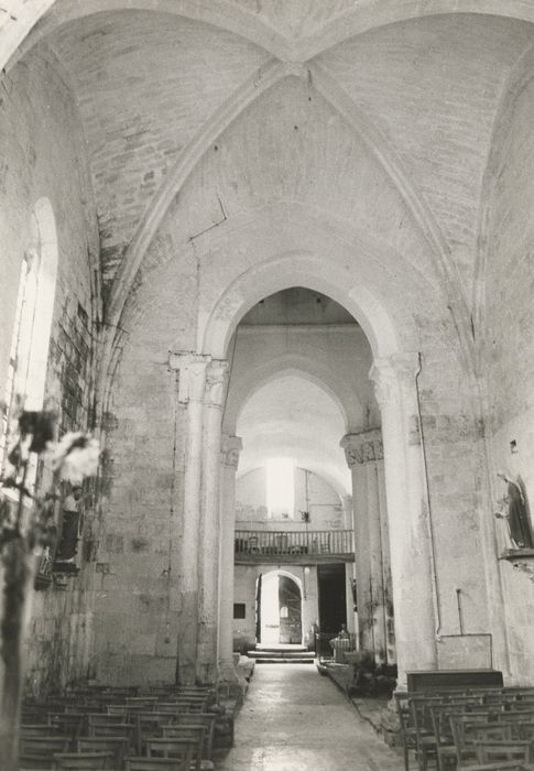 Les destructions entraînées par l'occupation anglaise expliquent les transformations subies par l'église au cours du 15e siècle. Construite sur un plan en croix latine, elle comprend une nef et un clocher de style roman tandis que le chevet a été réédifié au 15e siècle. La façade s'ouvre par un portail à deux voussures. A l'étage, trois arcatures posées sur des colonnettes, encadrent et abritent une fenêtre d'axe. Le tout est coiffé d'un mur pignon qui se retrouve également au chevet. L'élévation nord est percée de fenêtres du 12e siècle richement ornées. L'abside primitive, demi-circulaire, a été abattue et remplacée par un chevet plat gothique percé d'une verrière flamboyante. Le clocher carré, à un étage, est un beau spécimen d'art roman. Il est orné, sur chacune de ses faces, de deux fenêtres en plein cintre avec colonnettes. La façade actuelle, malgré son style 12e siècle, a dû être remontée à une époque postérieure, l'ancienne devant s'élever plus à l'ouest. A l'intérieur, quatre massifs formés de colonnes portent une coupole sur trompes. Un transept avec absidiole, sans cul de four, complète l'ensemble. Des traces de fresques (15e siècle ?) sont visibles dans l'absidiole nord.