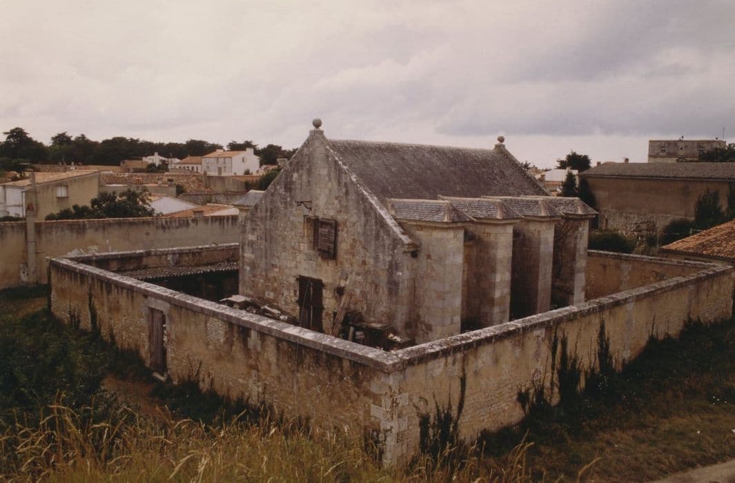 L'Ile-d'Aix représente dès le 17ème siècle, un élément déterminant du dispositif de défense des côtes et de l'arsenal de Rochefort. Dans le souci de protéger cette zone stratégique, une première batterie est édifiée, à cette époque, sur le fort de la Rade, suivie par des fortifications successives. Vauban construit une extension sur le fort de la Rade puis Montalembert apporte sa participation. Au début du 19ème siècle, Napoléon Bonaparte se préoccupe de la fortification de l'Ile- d'Aix. Il va alors unir le bourg dans une enceinte et ordonner, en 1808, la construction d'une maison pour le commandant de la place ainsi qu'un ensemble de casernes. En 1810, est édifié une poudrière juste en arrière des fortifications du bourg. £La poudrière est un petit bâtiment conçu sur un plan rectangulaire, à deux niveaux, situé dans une enceinte ouverte d'une seule porte. Elle est construite au centre d'une cour entièrement pavée. C'est un édifice très massif en pierre de taille muni d'une toiture à deux pans en ardoises. Les pignons découverts sont ornés d'amortissements, en forme de boulets. Les élévations nord-est et sud-ouest sont chacune étayées par quatre contreforts très débordants et couverts en ardoise. La façade sud-est est percée d'une baie à l'étage et la façade nord-ouest se compose d'une porte à deux vantaux ainsi que d'une fenêtre carrée à l'étage. L'intérieur conserve un sol recouvert d'un plancher en chêne. Un escalier également en chêne monte à l'étage en mezzanine. L'ensemble est voûté d'un berceau appareillé et les élévations sont percés de petits évents en chicane, à mi hauteur.