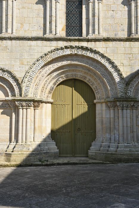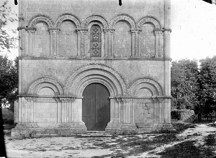Fondé en 1103, ce prieuré avec vicariat perpétuel était à la nomination du prieur de l'abbaye Saint-Eutrope de Saintes. Le pignon de la façade occidentale a été restauré en 1858 puis après la Seconde guerre mondiale. L'édifice est en forme de croix latine et se compose d'une nef, d'un transept et d'un choeur à chevet plat. Sur la croisée du transept se trouvait autrefois le clocher carré à la base. La nef était couverte de voûtes en plein cintre, en briques creuses et plâtre sur doubleaux en pierre. Le mur oriental est percé d'une grande fenêtre à meneaux du 15e siècle. Le choeur est couvert d'une voûte sur croisée d'ogives retombant sur des chapiteaux. Sous la dernière travée de choeur se trouve une crypte couverte d'une voûte en arc brisé. L'accès se fait par la façade nord, par un emmarchement extérieur de plan circulaire. L'extrémité sud de la crypte est éclairée par une petite fenêtre. Dans l'angle de la nef et du croisillon nord, un escalier à vis donnait accès à l'ancien clocher. La façade occidentale s'ouvre, en son centre, par un portail surmonté d'une archivolte à quatre voussures sculptées retombant sur des colonnettes. Ce portail est flanqué de deux arcatures aveugles, surmontées d'archivoltes sculptées retombant également sur des colonnettes. Une frise sculptée traverse l'arcature à la hauteur des chapiteaux des colonnettes. Le premier étage est percé d'une fenêtre au centre, flanquée de quatre arcatures aveugles dont les archivoltes sculptées reposent sur des chapiteaux. Le cordon qui couronne la façade est surmonté d'un pignon qui portail un clocher à arcade.
