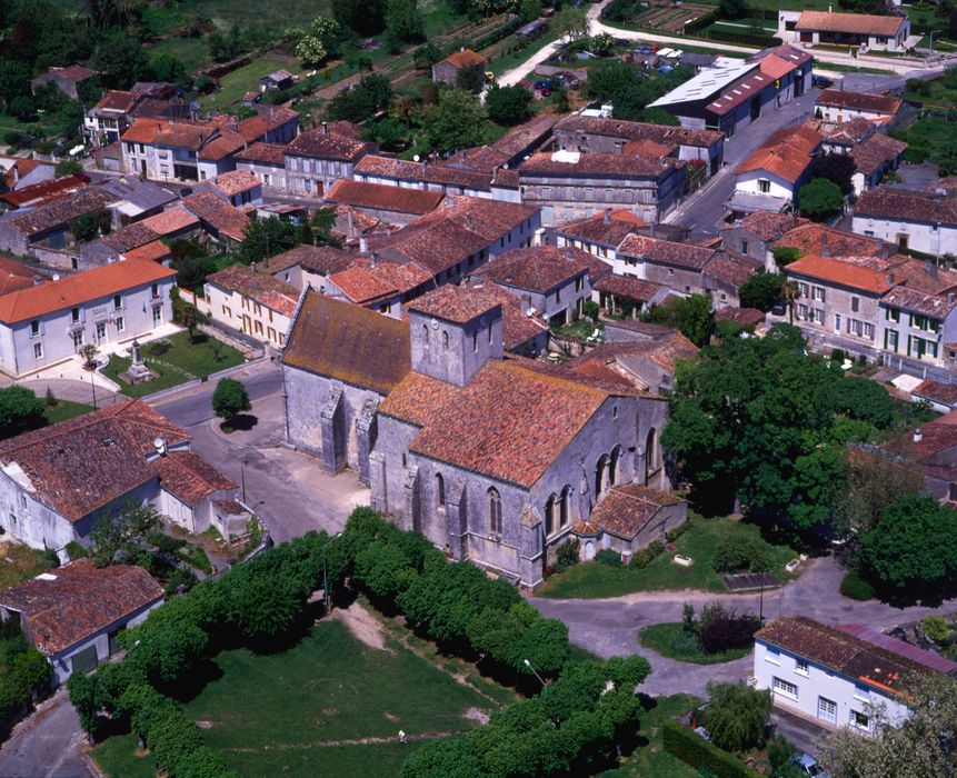 L'église était, à l'origine, en forme de croix latine, avec un clocher à l'intersection des transepts. Le transept nord, avec sa voûte en blocage et des arcs plein cintre, peut remonter au 10e siècle, ainsi qu'une partie de l'ancien choeur. Le rond-point de l'ancienne abside a été remplacé, au 13e siècle, par une trouée ajoutée au choeur et terminée, à l'est, par un mur droit. Les murs qui fermaient les transepts ont été supprimés pour bâtir deux chapelles qui s'étendent jusqu'à l'alignement du fond du sanctuaire. Vue de l'extérieur, l'église présente un vaste chevet carré ayant un développement égal à la longueur du transept. La nef a perdu sa voûte, qui devait être en ogive à arcs doubleaux carrés. Le clocher, bâti sur la croisée de transept, repose sur des arcs en ogive qui ont été emboîtés, avec leur pilier de support, dans l'édifice primitif. La façade se divise en trois niveaux et paraît remonter au 12e siècle. Toutefois, la porte d'entrée a été refaite au cours du 16e siècle.