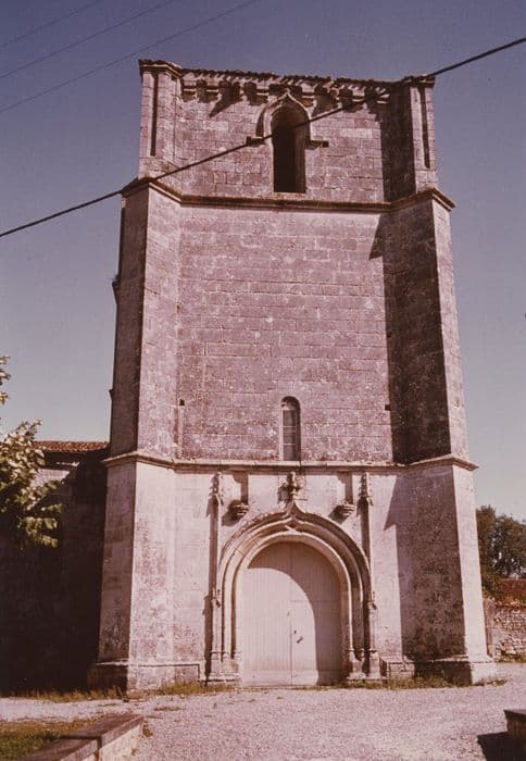 Edifice bâti en une seule fois au 16e siècle, sur un plan rectangulaire flanqué de contreforts au nord et au sud, et d'une chapelle carrée au nord. Le clocher, qui occupe toute la partie occidentale, est une construction massive carrée, inachevée, qui aurait dû se terminer par une flèche à crochets. A l'intérieur de ce dernier, la voûte le séparant du premier étage est détruite. La voûte du premier étage, au-dessus, présente des liernes et des tiercerons. Quelques marches donnent accès à un vaste vaisseau rectangulaire divisé en trois travées voûtées en ogives étoilées, avec liernes. Les murs sont percés de fenêtres tréflées. L'abside se termine à l'orient par un chevet plat, ajouré d'une fenêtre flamboyante à deux meneaux.
