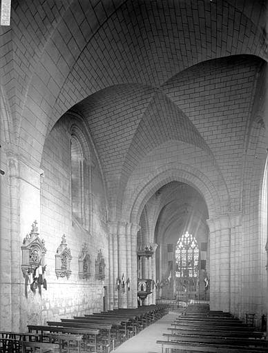 L'église comprend deux parties, l'une du 11e siècle et l'autre du 15e. La première partie comprend les restes d'une ancienne chapelle au sud, encastrée dans le bas-côté, et sous laquelle existe une crypte. Cette partie s'ouvre par un portail à trois arcatures dont deux appuyées sur deux pilastres et neuf colonnettes. Une frise semblant représenter les sept péchés capitaux court sur la façade. La deuxième partie est constituée par l'abside et appartient au style flamboyant. Elle s'ouvre par une porte avec colonnes en faisceaux prismatiques, crosses végétales, niche pour statuette, et couronnée par une coquille. Le clocher se termine en coupole et présente une galerie.