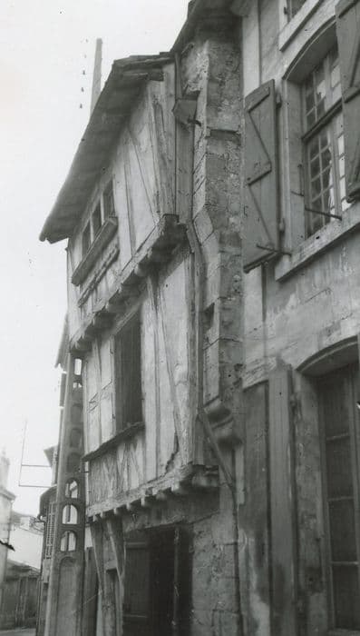 Maison composée d'un rez-de-chaussée et de deux étages en encorbellement. La façade est en pans de bois apparent.
