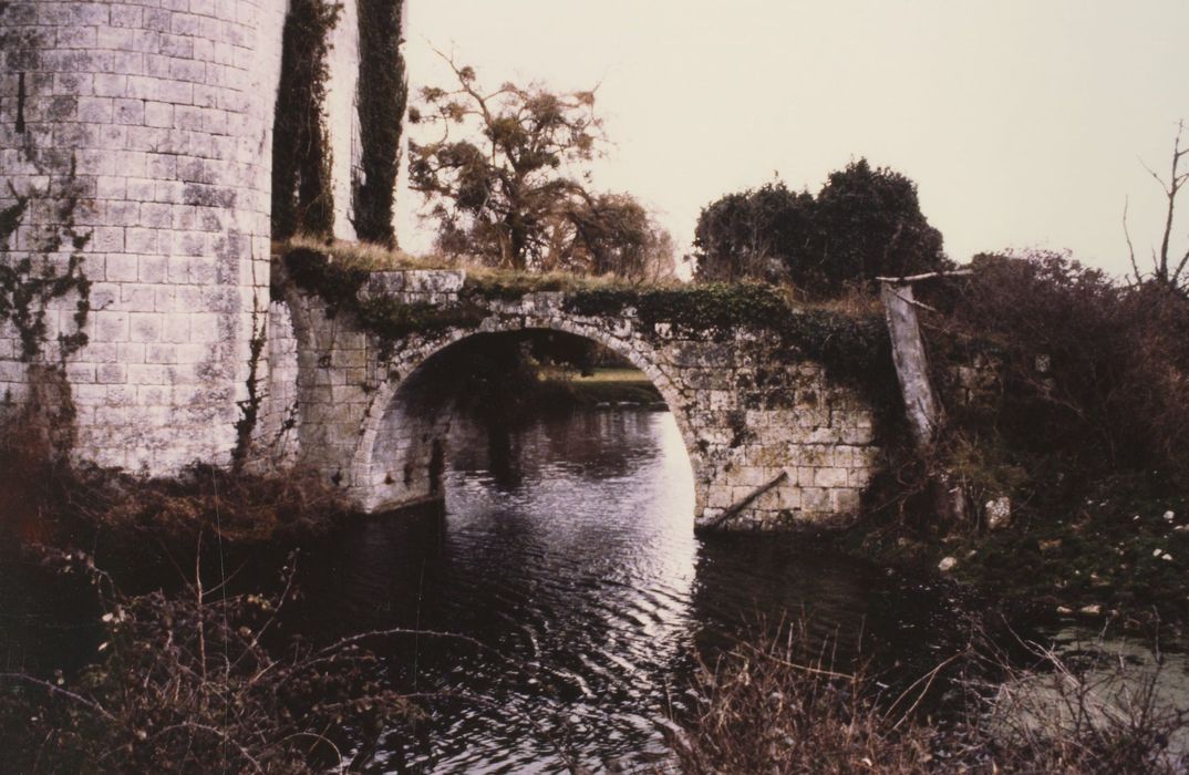 Construction du château entreprise par Guillaume de Lusignan vers 1180. Fortifications terminées au 13e siècle. Transformation du corps de logis aux 14e et 15e siècles. Le manoir a été édifié suivant un plan polygonal. Deux tours se détachent sur les courtines : une tour demi-circulaire établie à côté de la porte d'entrée et une tour établie du côté opposé. L'entrée dans la cour se fait par un pont en pierre remplaçant l'ancien pont-levis. La porte était défendue par une tour avec corbeaux et mâchicoulis dont il ne reste que les encorbellements. A l'intérieur de l'enceinte, des bâtiments ont été élevés et disposés en équerre. Celui de droit remonte au 15e siècle, constituant un logis. Celui du fond est en ruine. Ce corps de logis comprend deux étages. L'entrée s'y fait par une tour circulaire contenant l'escalier à vis. La porte de style gothique flamboyant, encadrée de colonnettes, pinacles et accolades, est surmontée d'un blason tenu par deux lions. Sur la cour intérieure, un escalier sur un arc donnait accès au chemin de ronde.
