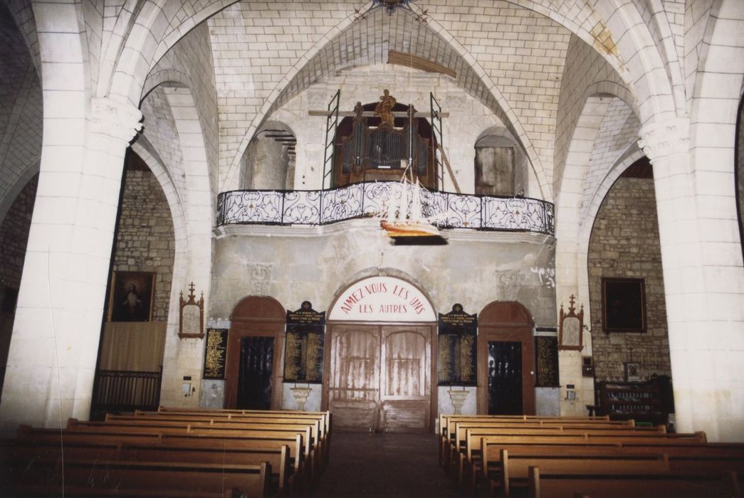 L'église a connu, depuis son origine romane, de nombreuses vicissitudes dues aux guerres de Religion et ne semble être rétablie qu'en 1623. La façade a été reconstruite au 18e siècle dans le style néo-classique et le clocher porte la date de 1776. Cette façade est à deux niveaux décorés de pilastres plats et d'ailerons. Après 1850, elle a été élargie d'un bas-côté. La nef est flanquée de deux bas-côtés. Les voûtes d'arêtes en matériaux légers, sont décorées d'un faux appareillage figurant des croisées d'ogives (1890). La croisée du transept et le choeur sont sous charpente. Les chapelles latérales du choeur sont couvertes d'une voûte en plâtre néo-gothique.