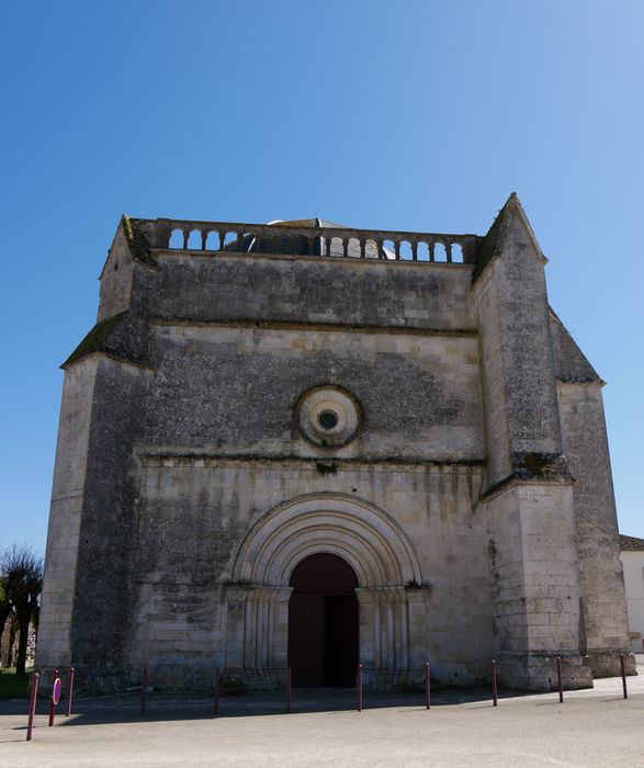 Eglise à une seule nef, autrefois à trois travées voûtées en coupole. Il reste la trace de deux travées et les coupoles ont été refaites en ciment armé vers 1900. Les groupes de colonnes portent des chapiteaux sculptés de facture 12e siècle. Le clocher carré s'élève sur une coupole sphérique à pendentifs. La façade principale est percée d'un portail à quatre archivoltes reposant sur des colonnes à chapiteaux.
